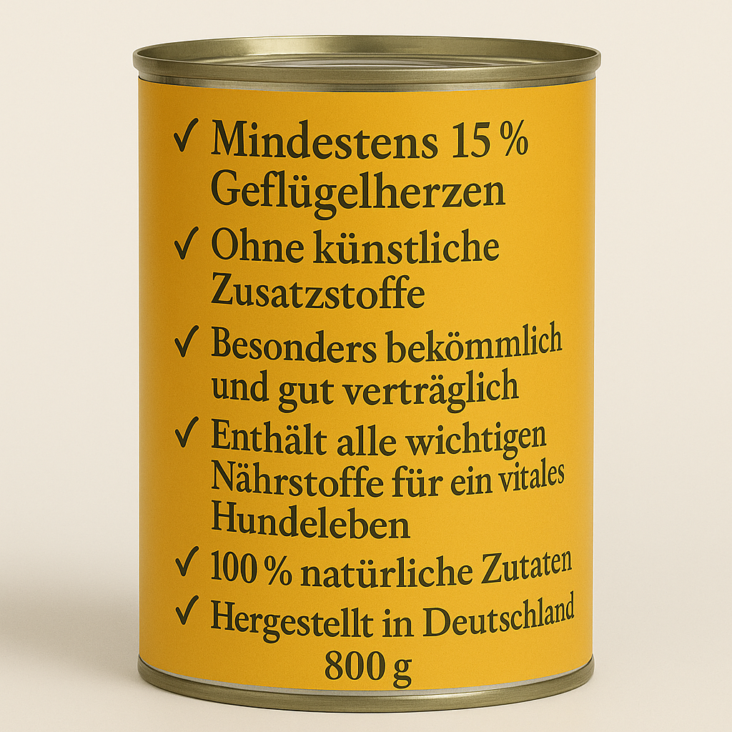 (mind 15 % Geflügelherzen, mind. 6 % Herz, mind 6 % Innereien, mind. 6 % Magen, mind 4 % Muskelfleisch), Mineralien