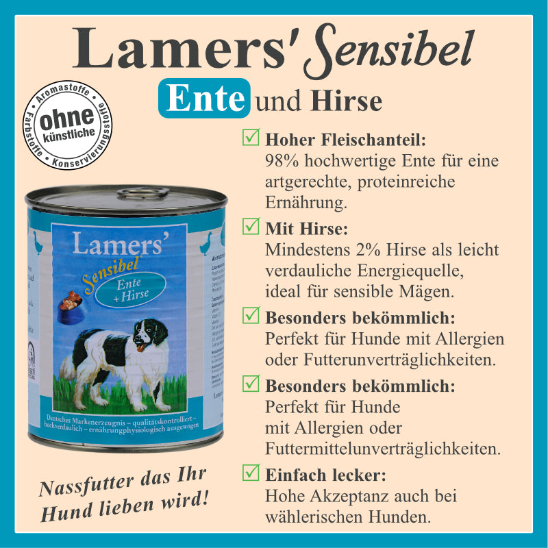 Lamers Sensible Ente & Hirse – Beste Qualität für empfindliche Hunde